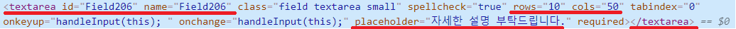- placeholder는 문자 구역에 설명을 적어 넣을 수 있습니다.