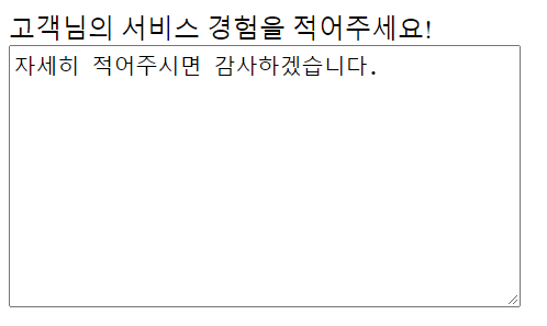 <label for="feedback">고객님의 서비스 경험을 적어주세요!</label>