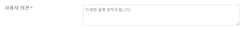 <textarea id="feedback" name="feedback" rows="10" cols="40">자세히 적어주시면 감사하겠습니다.</textarea>