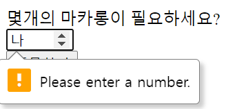 - <label for="macaron">몇 개의 마카롱이 필요하세요?</label> input과 엮어 설명을 붙이기 위한 빌드업