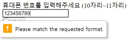 - <label for="phonenum">휴대폰 번호를 입력해주세요 (10자리~11자리)</label> → 휴대폰 번호(10자리~11자리)를 입력해 달라고 label을 달아줌