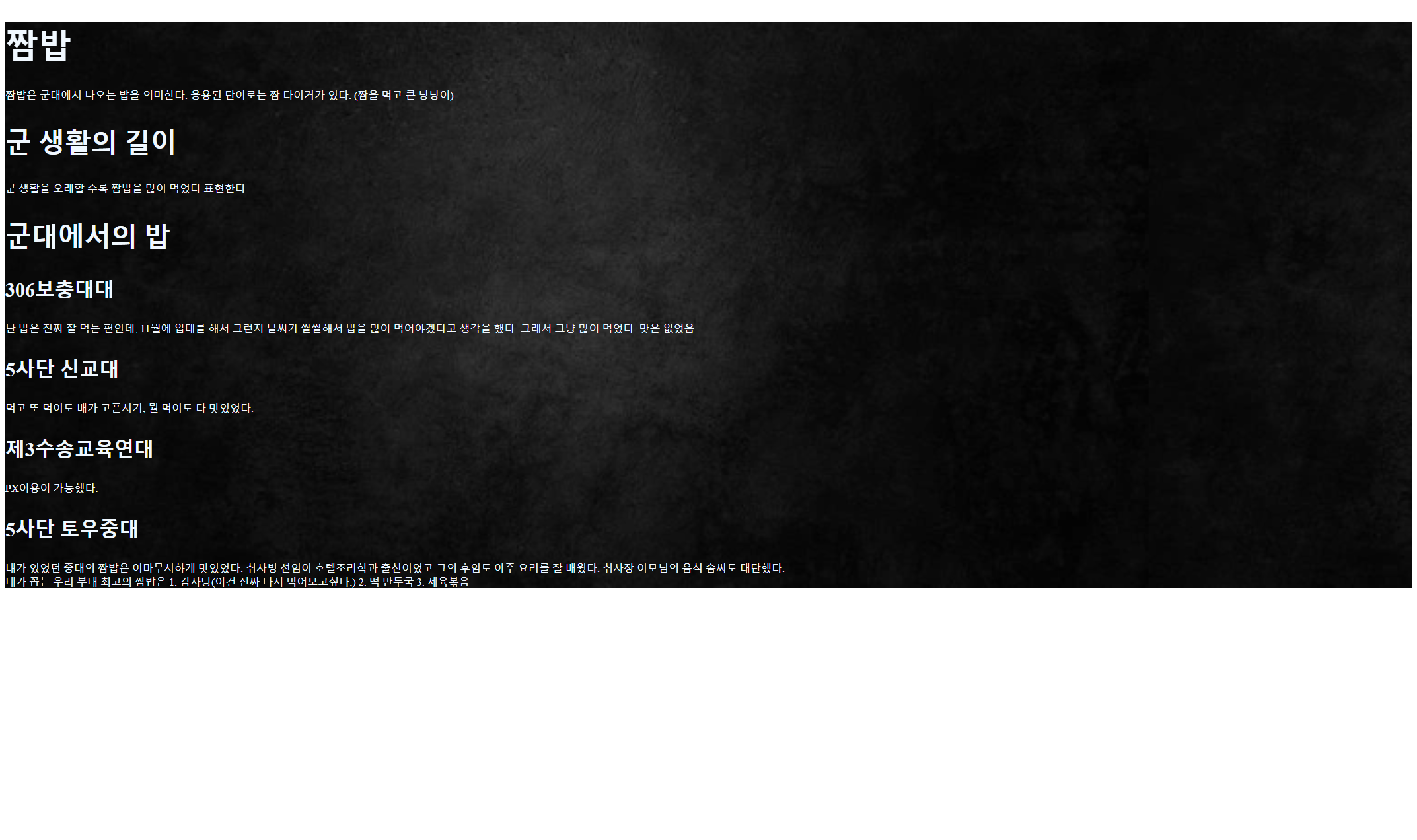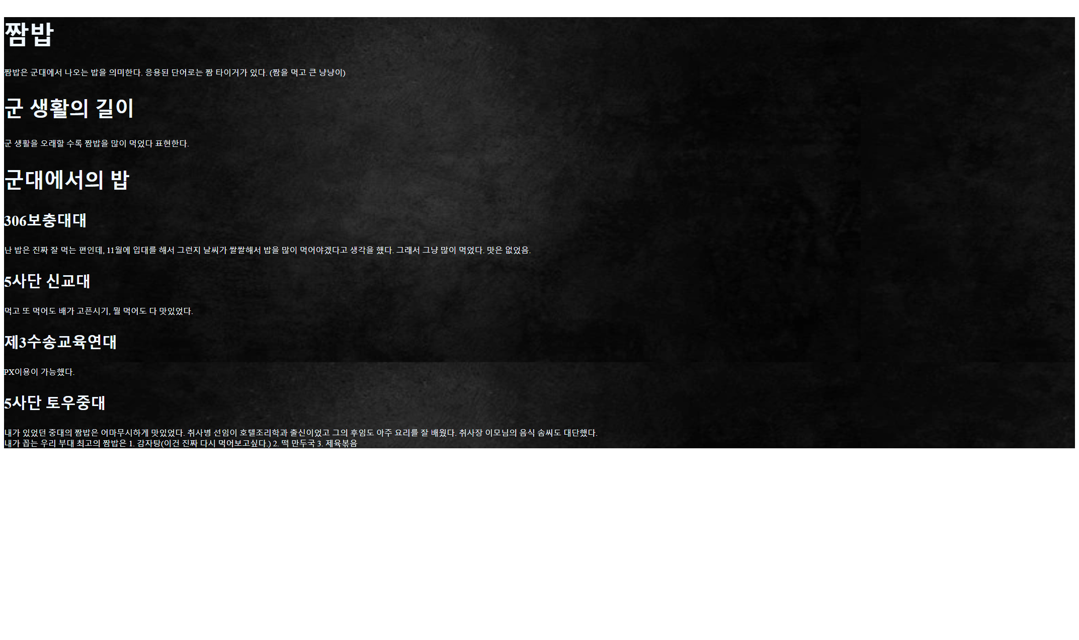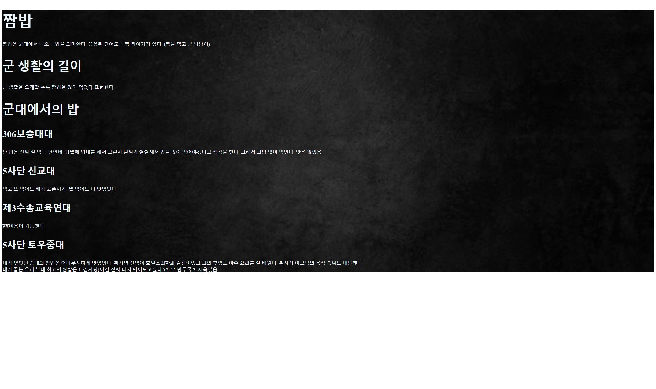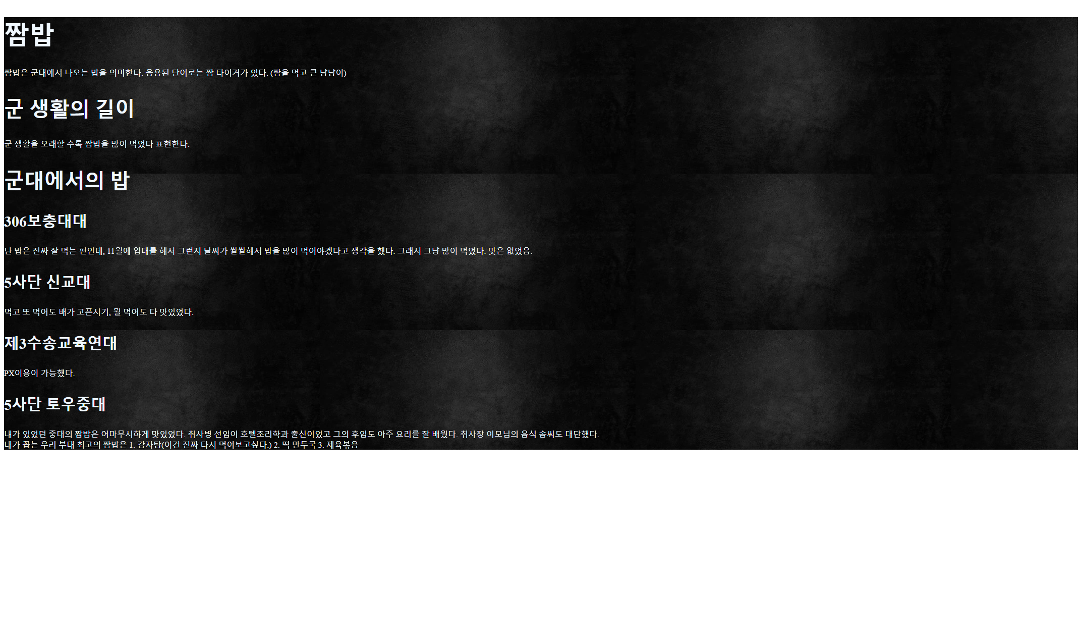 <h1>짬밥</h1>