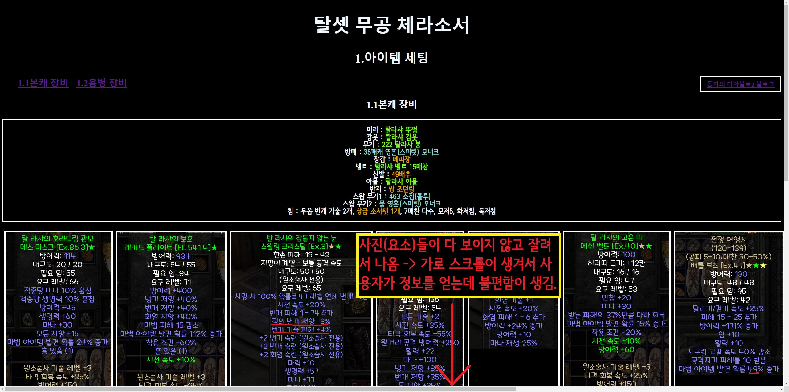 - 가로 스크롤이 사라지고 하나의 행으로 쭉 나열되었던 사진(요소)들이 복수(여러)행으로 나뉘어 정렬을 한 모습입니다.