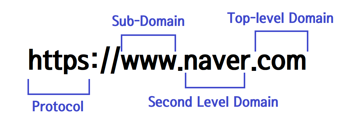 - 탑 레벨 도메인(Top-level Domain)은 점 오른쪽에 와야한다. (예 : naver.com)