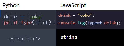 모든 언어에 drink란 변수를 만들고 'coke'를 넣고 타입을 알아 봤더니 모두 string 으로 나오는 것을 확인 할 수 있습니다.