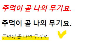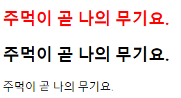 CSS 코드로 두 가지의 경우의 코드를 적용하면 첫 번째 "주먹이 곧 나의 무기요."에게만 적용이 됩니다.