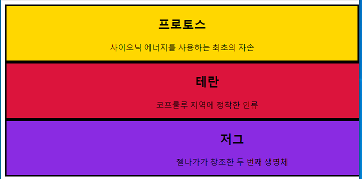 각 종족의 min-width를 700, 800, 900으로 다르게 주고 실행하면