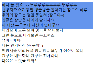 하나 둘 셋 야 ~~ 뚜루루루루루루루 뚜루루루<br>
