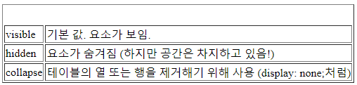 visible, 기본 값. 요소가 보임. <tbody><tr> - 붕괴