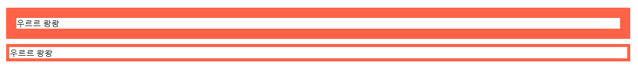초기의 HTML은 border(경계)가 빠져 있는 content 영역(이 부분은 padding이 설정되어 있다면 포함됩니다)이 width의 값을 반영 받아 크기가 바뀌었습니다. 자세히 보면 content 영역은 width가 같음을 알 수 있음.