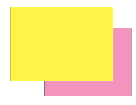 이렇게 두 도형이 겹쳐져 있는데 분홍색 직사각형이 노란색 직사각형 위에 있습니다. 이때 분홍색 직사각형을 클릭하고 'ctrl + ['를 누르면 분홍색 직사각형이 아래로 내려갑니다.