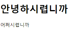 <p><h1>안녕하시렵니까</h1>어쩌시렵니까</p>