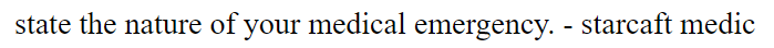 <p>state the nature of your medical emergency. - starcaft medic</p>
