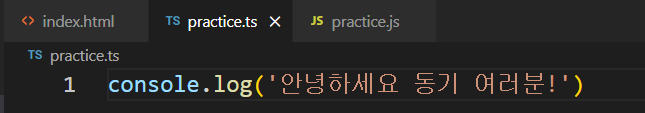- practice.js 파일로 가보니 console.log('안녕하세요 동기 여러분!');이 찍혀 나왔습니다!!!
