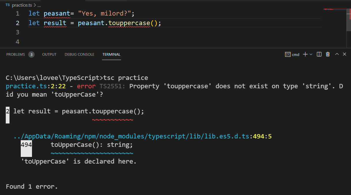 - 컴파일링을 하면 "toUpperCase로 적으려 했던 거 아니야?" 하면서 에러를 띄운다.