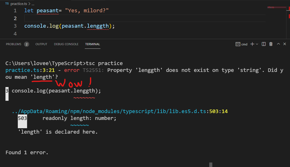 - 컴파일링을 하면 "length 적으려 했던 거 아니야?" 하며 에러를 띄운다.
