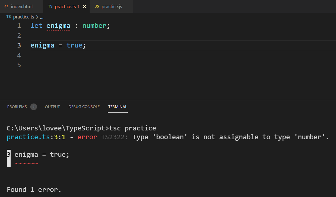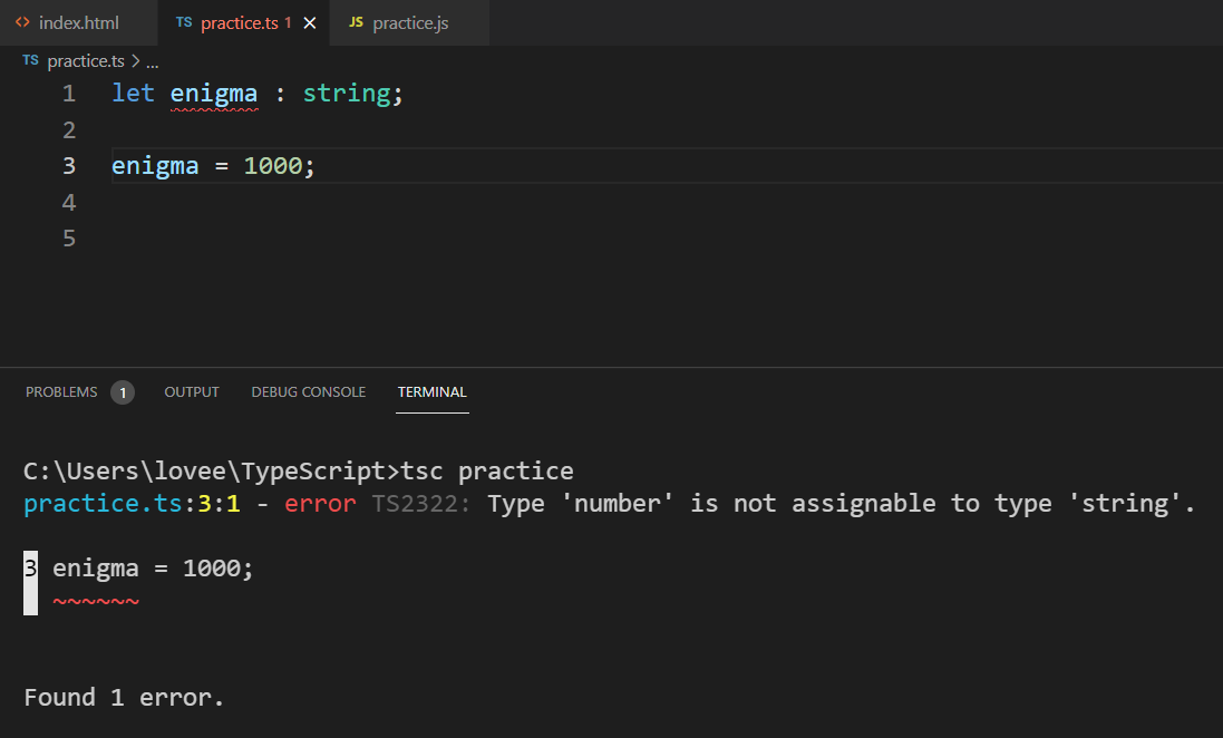 오늘은 변수에 타입만 선언하고 변수를 다른 타입으로 변경 했을 때 어떤 에러가 뜨는지 알아보도록 합시다.