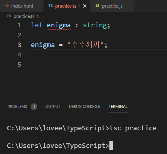저번 시간에 변수를 타입 any로 선언하고 변수에 다른 타입의 값을 넣으니까 아무 에러가 없이 컴파일링 된 모습을 확인했습니다.