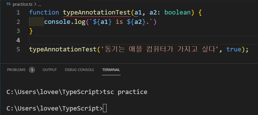 typeAnnotationTest('동기는 애플 컴퓨터가 가지고 싶다', true);