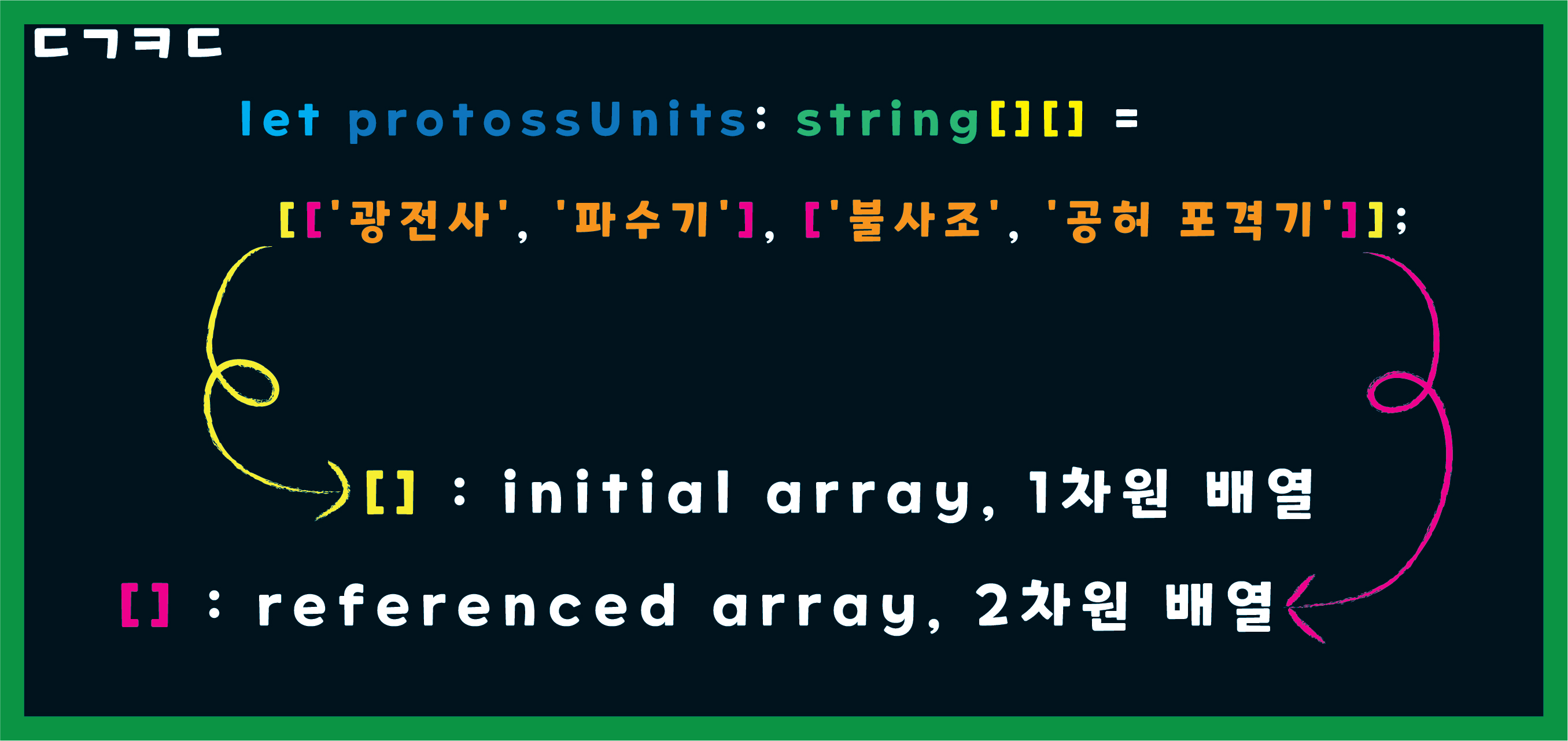 let protossUnits: string[] = [['광전사', '파수기'], ['불사조', '공허 포격기']];