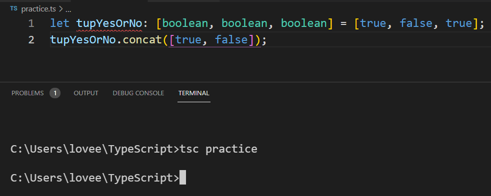 이런 경우에는 항상 boolean[]이 타입으로 설정이 됩니다. 왜냐하면 튜플 형식의 타입은 따로 선언을 해주어야 하기 때문입니다.