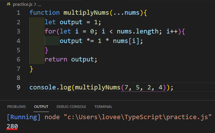 - 레스트 매개 변수는 배열이기 때문에 타입 선언 시 [] 대괄호(brackets)를 꼭 넣어 주어야 합니다.