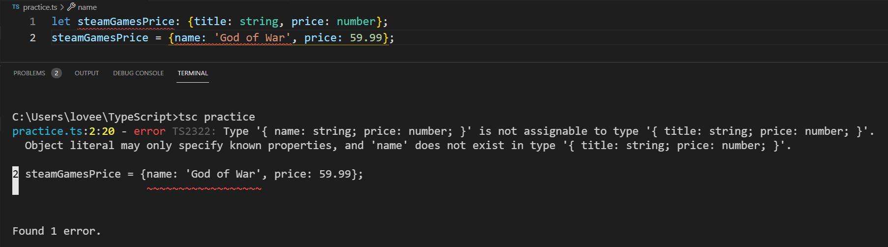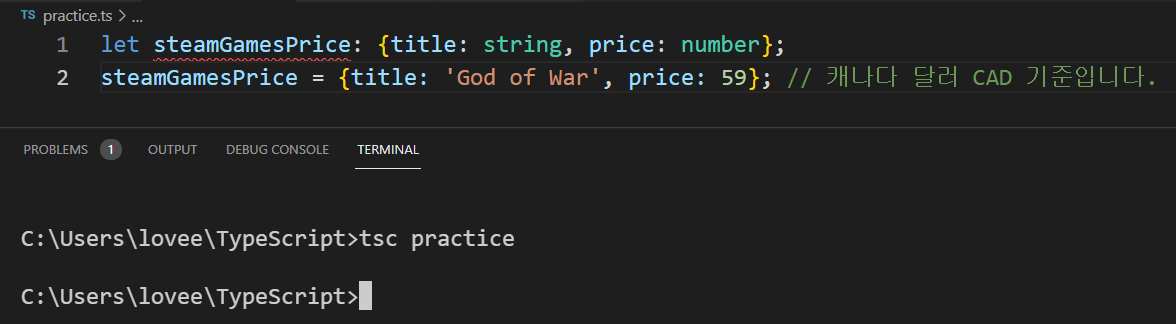 : 대신 =을 사용함 ㅠ ㅠ 실수의 예 → let steamGamesPrice= {title: string, price: number};