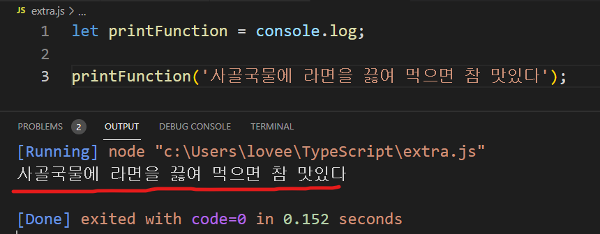 printFunction('사골국물에 라면을 끓여 먹으면 참 맛있다');