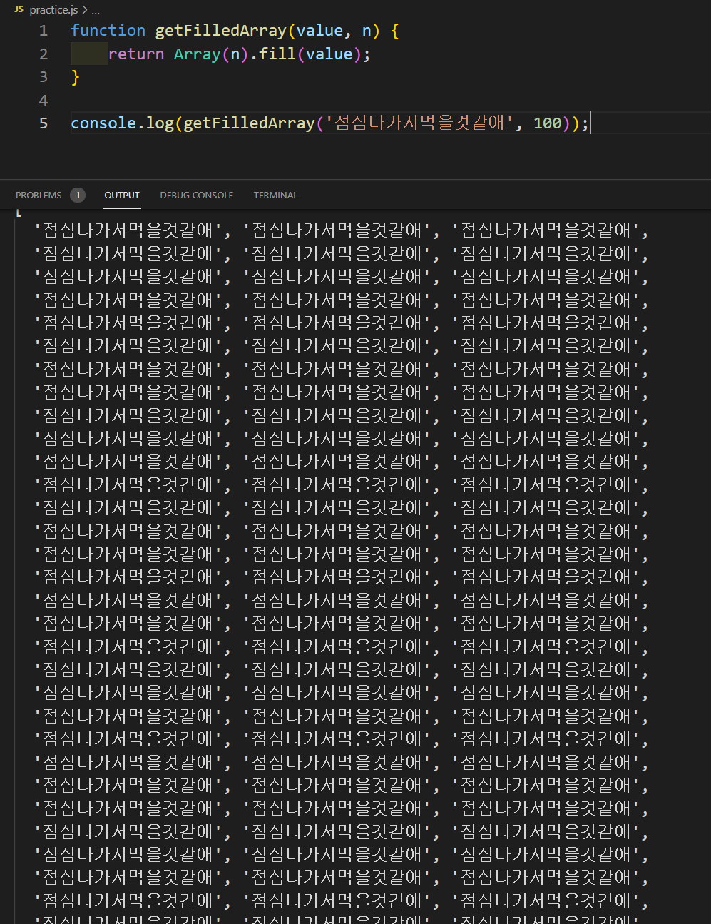 getFilledArray<string>('점심나가서먹을것같애', 100);