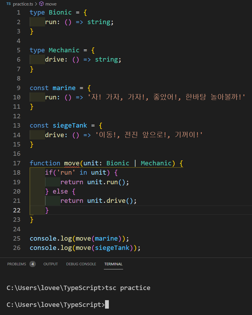 안녕하세요 동기 여러분! 헤헤 엠블럼을 하나 만들어 봤습니다ㅋㅋㅋ 오늘은 타입 좁히기의 세 번째 시간으로 if문에 else도 사용하여 타입을 좁혀 보도록 하겠습니다!!!