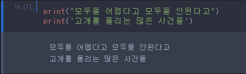 - 따옴표, 큰따옴표 모두 사용이 가능합니다.