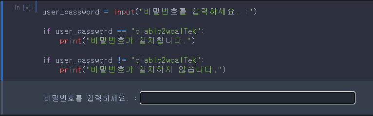 아래는 비밀번호에 따라 출력값이 달라지는 if문입니다.