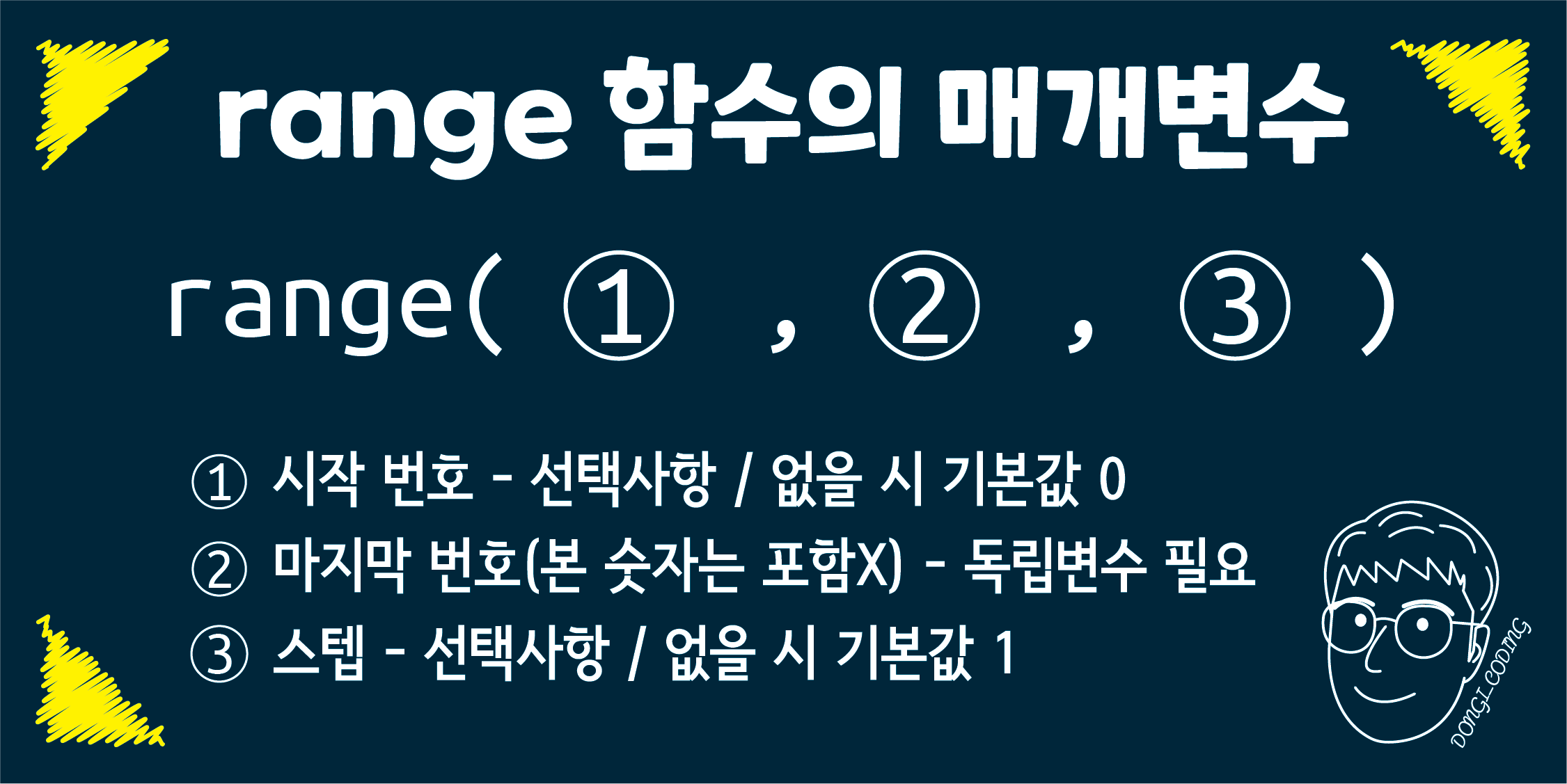 range() 함수를 사용할 때 매개변수는 총 3개를 넣을 수 있습니다.