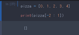 위의 코드의 문제는 아래의 스샷 처럼 만약 pizza[-2 : 0]을 하면 값이 빈 리스트로 나온다는 점이다.