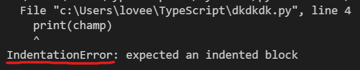 이럴 땐 컴퓨터가 친절하게 IndentatonError를 띄워주니까 혹시 이런 에러를 보신다면 들여 쓰기를 확인해보세요!