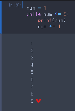 - 'num은 9보다 작거나 같다'로 조건문을 정해주고 : colon으로 기본 틀을 완성합니다.