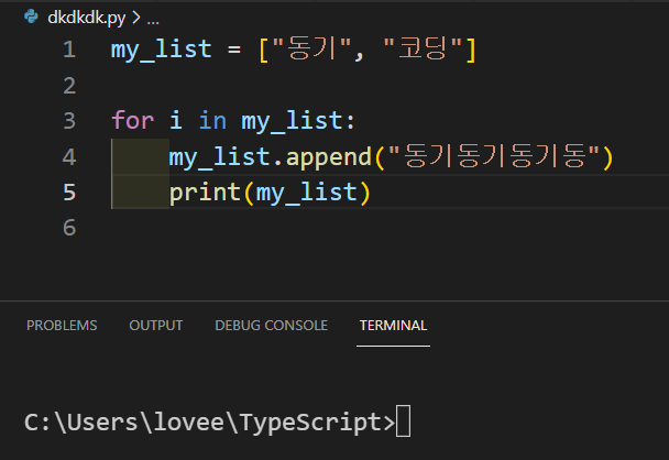 무한 반복이 되는 반복문을 만들었습니다. 그럼 제가 한 번 시도해보겠습니다.