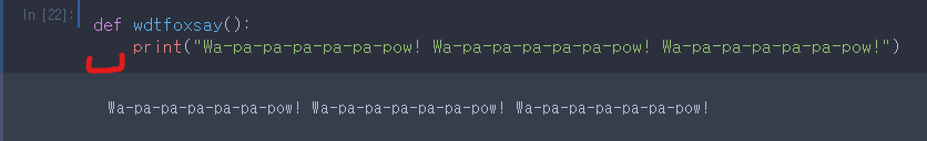 def와 : (colon)은 빼고 코드를 적어주고 실행하면 함수가 실행되면서 출력문이 나옵니다.