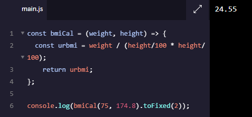 저의 BMI는 24.55가 나오는군요! 여러분도 BMI 코드를 한번 만들어보고 자신의 비만도 측정을 해보면 재밌을 거 같아요.