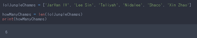 Python에서는 객체가 몇 개가 있는지 알아보기 위해 len()이라는 함수를 사용합니다. 예제 봐봐