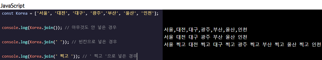 Variable.join(); // 소괄호 안에 값을 넣지 않을경우 , 으로 표시됨