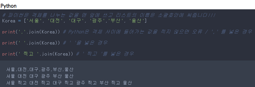 Python에서도 .join() 함수를 사용합니다. (주의 조금다름)