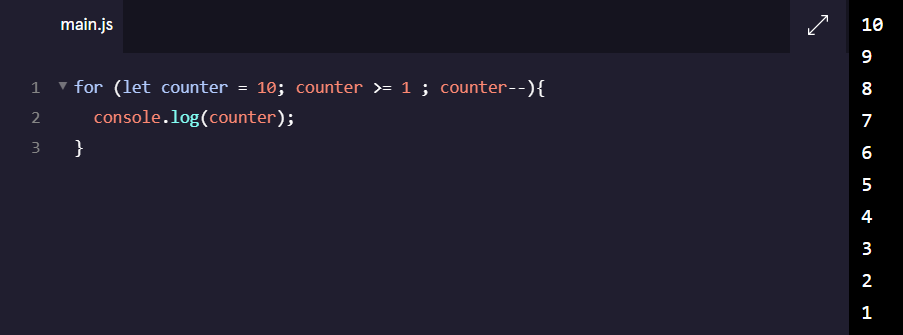 - 10부터 출력을 해야 하니까 변수 counter = 10;으로 설정해주시고