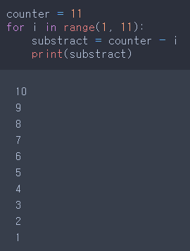 - 10까지만 출력을 할 예정이니 'counter는 11 보다 작다'를 적어주고 *여기서 제한을 두지 않으면 끝없이 출력됩니다.