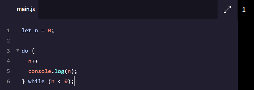 - 아까 Do...While문은 무조건 한 번은 실행한다고 했는데, 컨디션을 n이 0보다 작다 라고 해도 실행이 되는지 보겠습니다.