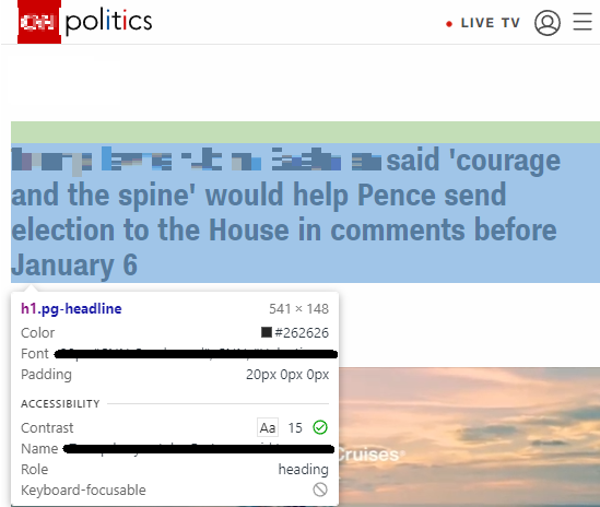 h1.pg-headline이 보이시나요? 우리가 주목해야할 부분은 h1입니다. 아하! 뉴스 타이틀은 h1이구나!