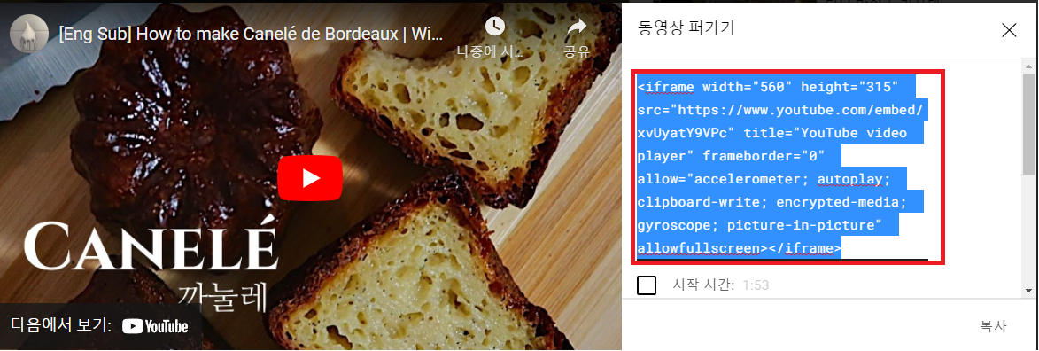 4. iframe을 복사한다.