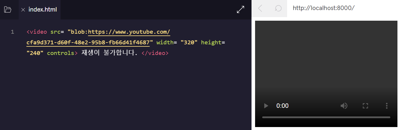 - 위에서 src= "URL"에는 동영상을 가져올 주소를 넣어주고