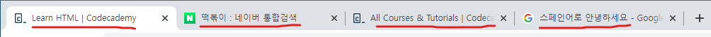 크롬 상단에 탭 버튼에 적혀 있는 이 친구들이 페이지 제목입니다.