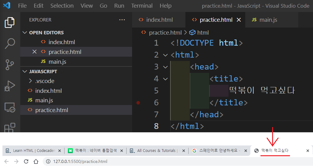 비주얼 스튜디오 코드로 떡볶이를 먹고 싶은 마음을 페이지 제목에 담아 보았습니다.